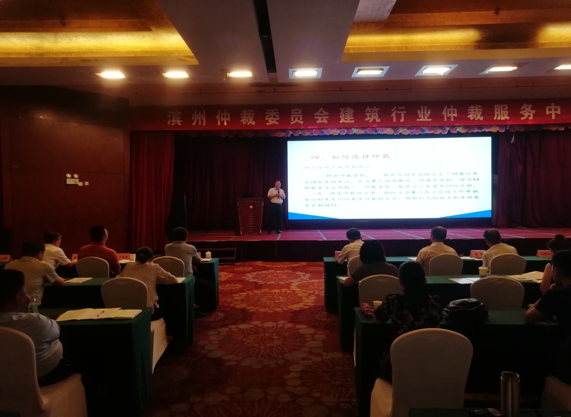 2019年8月7日,滨州仲裁委员会、滨州市建筑业协会关于滨州仲裁委员会建筑行业仲裁服务中心成立大会在滨州大学饭店隆重召开,来自市住建局、市仲裁委、市建筑行业领导以及我市各县区100多家建筑施工企业负责人参加会议,会议由滨州市仲裁服务中心党组成员、副主任李伟民主持,滨州市城市建设服务中心党组书记、主任刘汉卿、滨州市仲裁服务中心主任房延民发表重要讲话,举行了滨州仲裁委员会建筑行业仲裁服务中心授牌仪式,我所田启梁律师当选为滨州仲裁委员会建筑行业仲裁服务中心副主任。